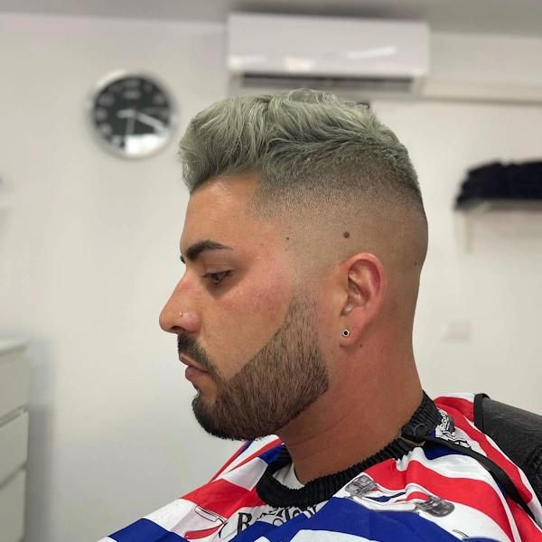 Un estilo para quienes buscan destacar. Combinamos un degradado a piel impecable con un diseño de línea lateral y una coloración platinada (silver) que aporta volumen y luminosidad al peinado.